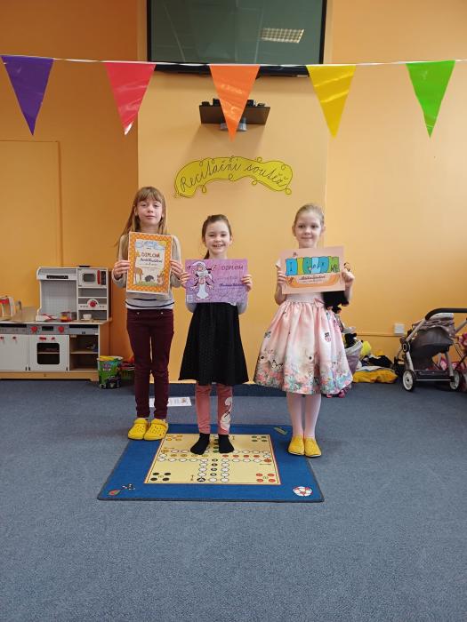 Ve čtvrtek 29. ledna se sešli všichni druháčci ve školní družině, aby si poslechli nejlepší recitátory z jednotlivých tříd a společně rozhodli o vítězi. Vyslechli jsme celkem 12 básniček v osobitém podání interpretů. Všichni velmi pěkně, s výrazem přednesli své básně a ostatní děti je odměnily hlasitým potleskem. Porota složená z učitelek měla obtížnou úlohu - vybrat z nich tři, kteří postoupí do školního kola, kde se utkají s žáky 3. tříd. Nakonec jednoznačně zvítězila Martinka, na druhém místě se umístila Bertička a třetí skončila Adélka. Všem třem moc gratulujeme a přejeme úspěch v dalším kole!